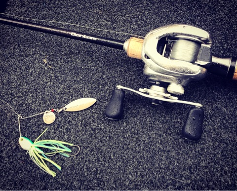 最終日の風ぶち当たりのドッグで巻いたスピナーベイト。2本キャッチしましたが、どちらもトレーラーフックに救われました!